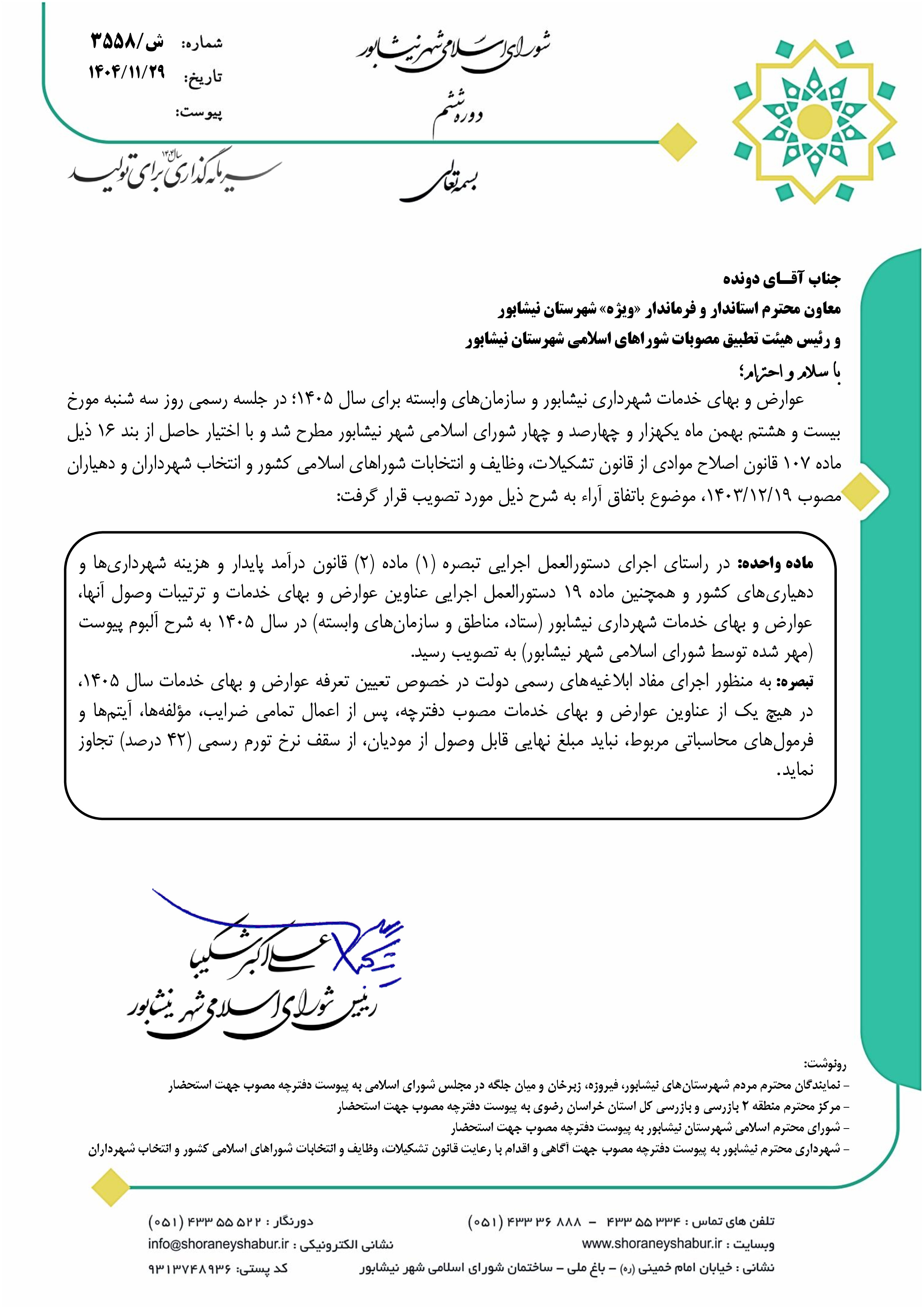 دفترچه عوارض و بهای خدمات ۱۴۰۵